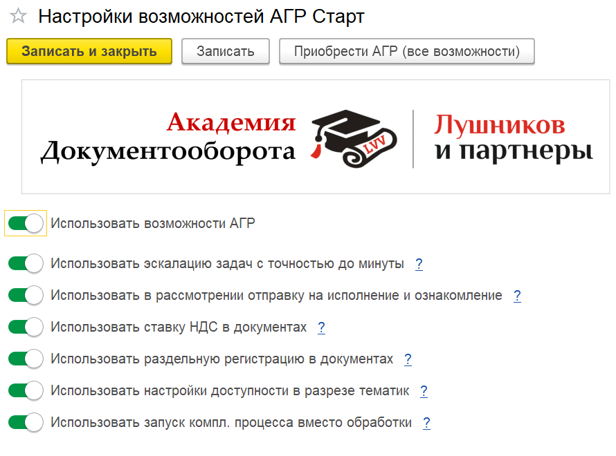 Академическое ГиперРасширение (АГР) разработано с целью расширить типовой функционал конфигурации «1С:Документооборот КОРП», редакции 3.0 (с релиза 3.0.16.33).