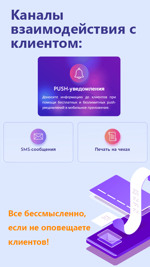 - Уведомляйте клиентов о начислении бонусных баллов.