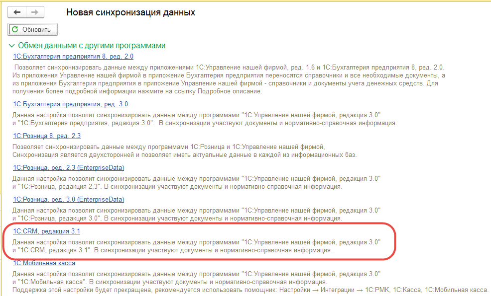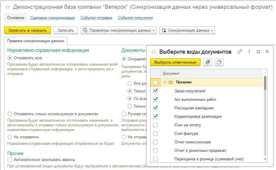 - Настройте обмен данными с 1С:Бухгалтерия.