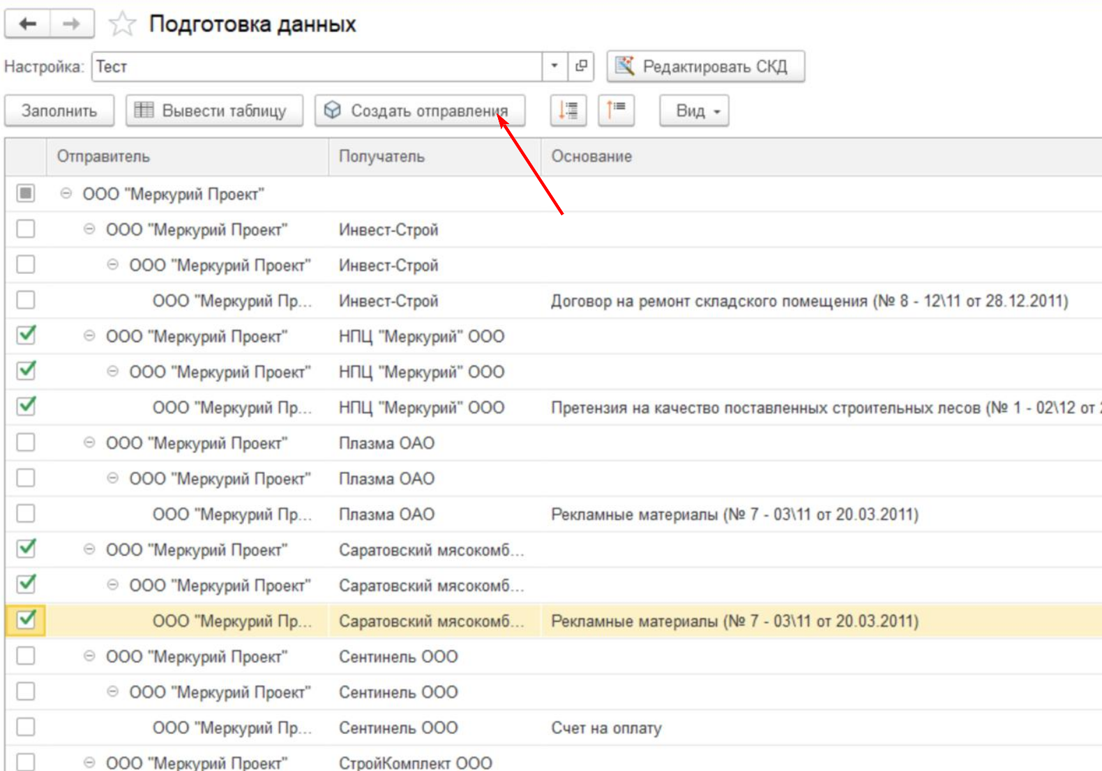 - создание отправок напрямую в конфигурациях 1С;