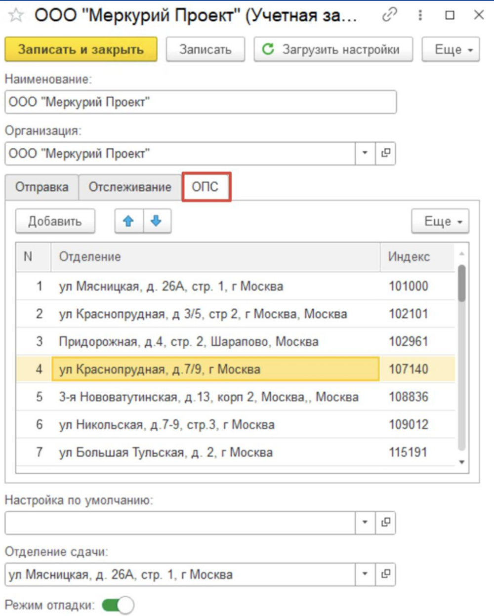 Для начала работы с расширением потребуется настроить учетные записи для доступа к личному кабинету юридического лица и к сервису отслеживания отправлений «Почты России».