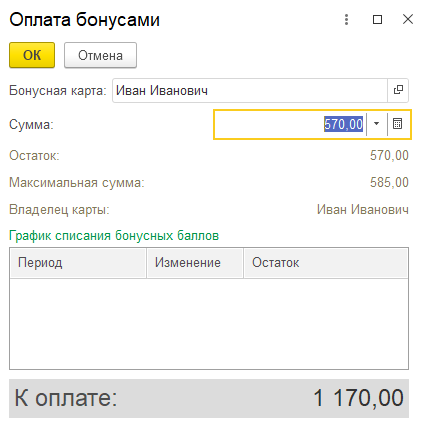 - Информация по клиентам, применившим систему лояльности при покупке, остается в 1С и в дальнейшем ее можно использовать для маркетинговых мероприятий.