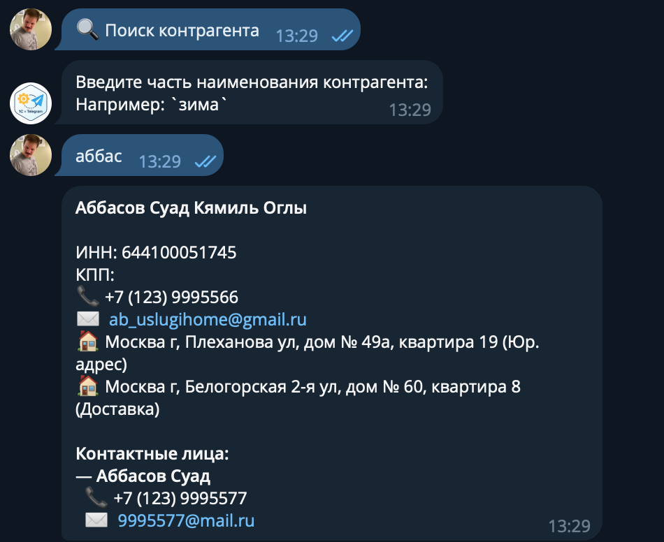 - Искать контрагентов: быстро найти клиента, увидеть контакты и историю заказов;