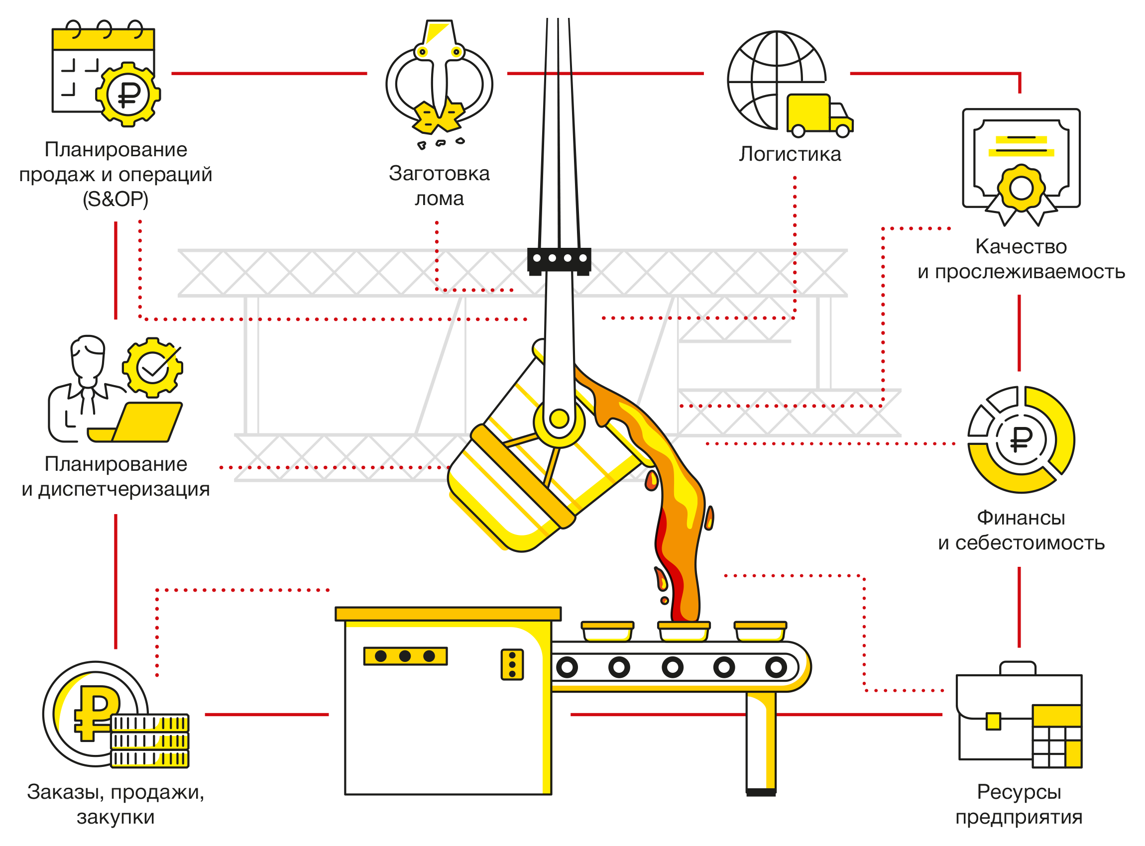 1C:ERP Металлургия – решение для комплексной автоматизации предприятий черной и цветной металлургии, а также многопрофильных предприятий с металлургическими переделами в технологической цепочке. Продукт позволяет управлять доменным и сталеплавильным производством, выплавкой цветных металлов, металлопрокатным и фасонно-литейным производством, а также заготовкой металлолома.