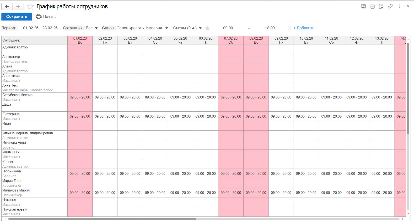 - Возможность просмотра списка сотрудников и планирования их графика работы.