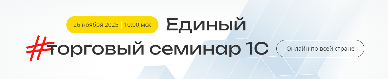 Приглашаем на бесплатный «Единый торговый семинар 1С». Фокус мероприятия на подготовке бизнеса к грядущим налоговым изменениям 2026 года: выбор оптимальной налоговой стратегии, сохранение бизнеса за счет роста эффективности продаж и автоматизации.