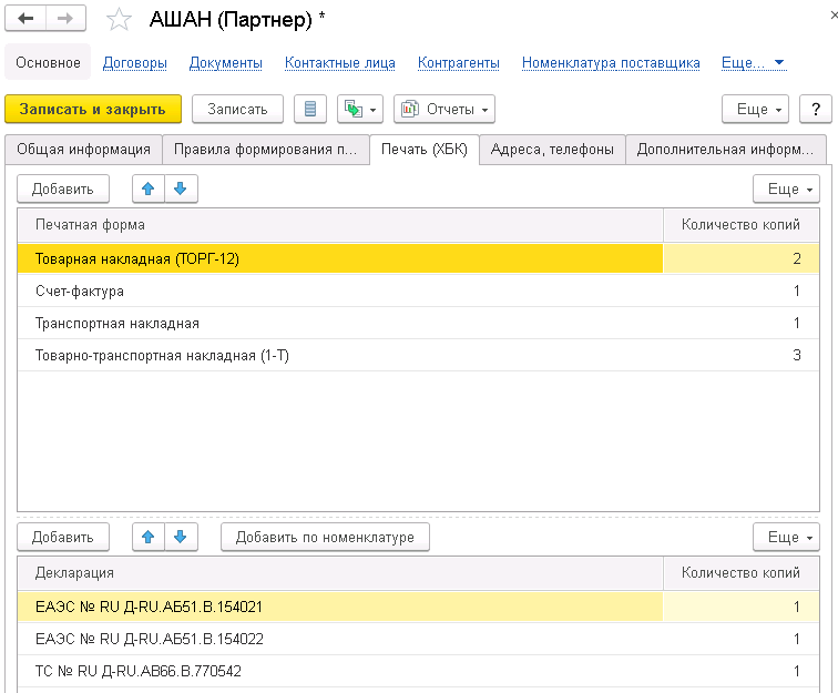 и настройка печати комплекта отгрузочных документов по партнерам.