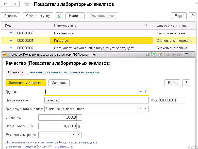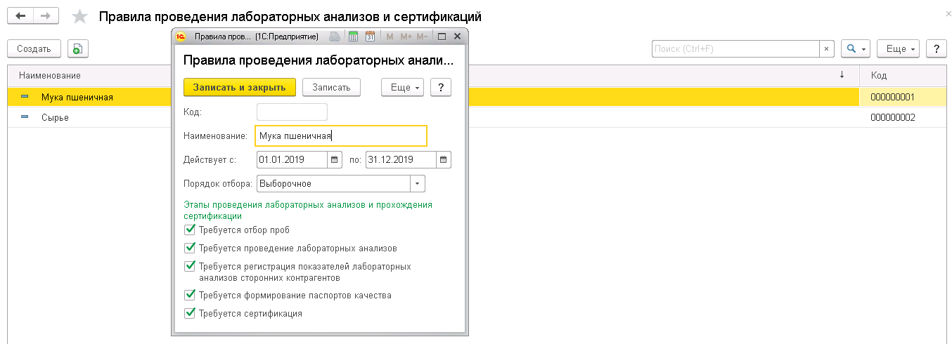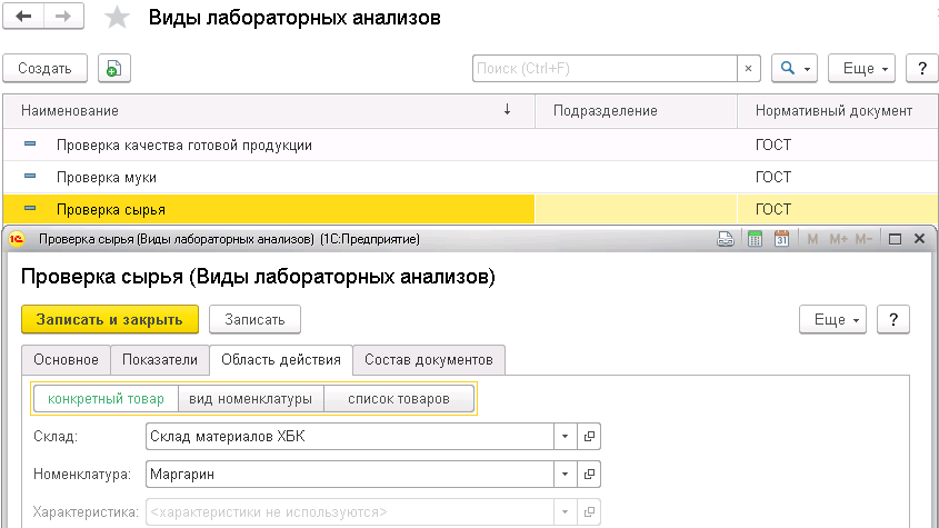 Включает справочники и документы, в которых задаются параметры для оценки показателей номенклатуры при проведении лабораторных анализов и сертификации: