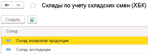 Регистр сведений "Склады по учету складских смен (ХБК)"