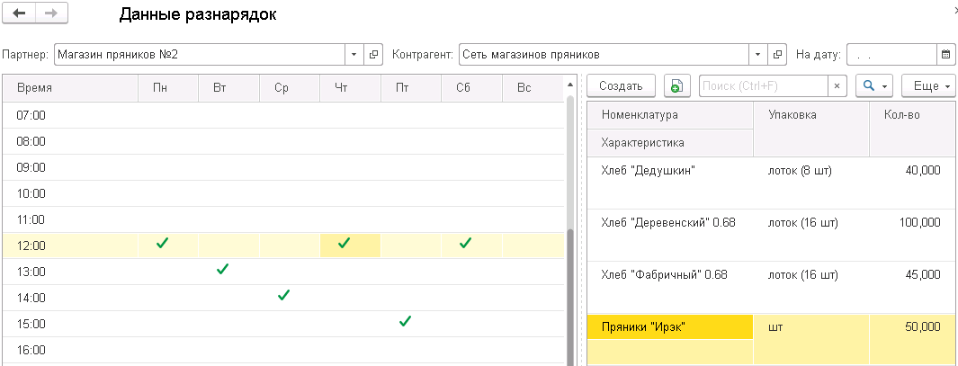 Позволяет хранить данные постоянных заказов клиентов по дням недели.