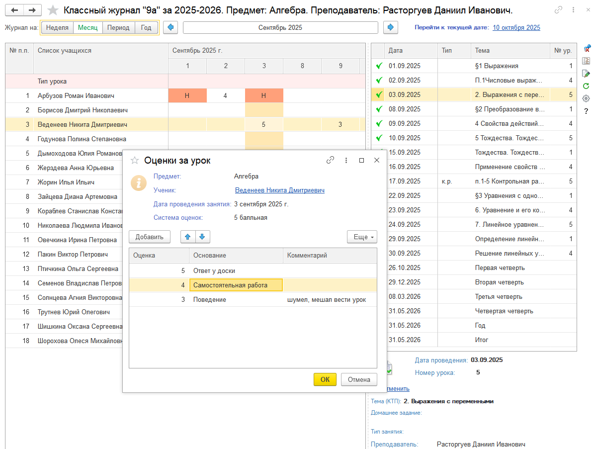 10. Интеграция с программным продуктом "1С:Школьный аттестат".