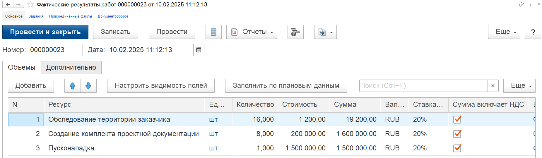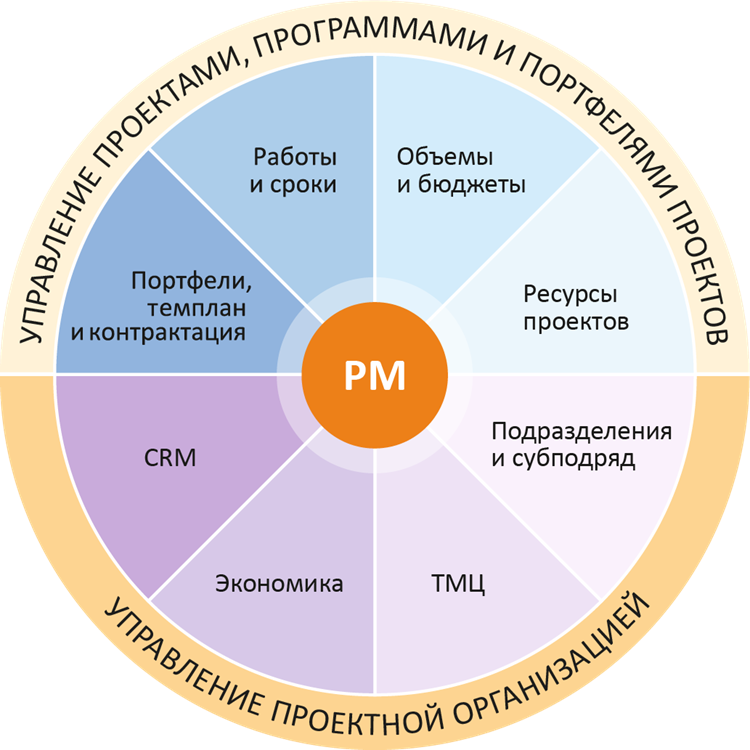 Ресурсы проектов, работа подразделений и субподрядчиков, ТМЦ: