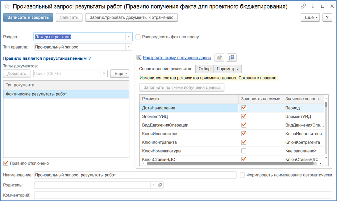 - Витрина данных для 1С:Аналитика: регистр для консолидации проектных данных с целью вывода на витрину 1С:Аналитика;