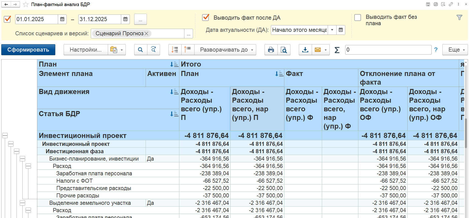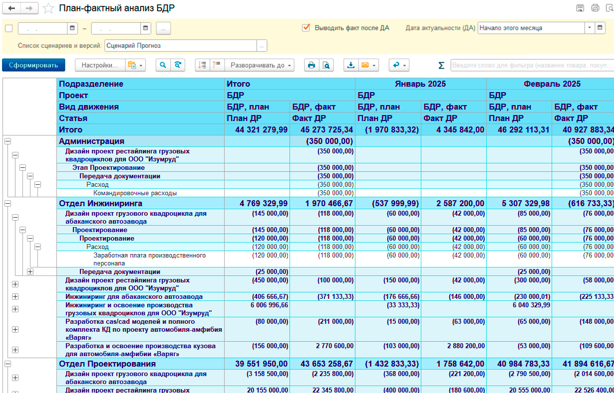 - актуализация данных БДР и БДДС по фактическим данным, с перепланированием;