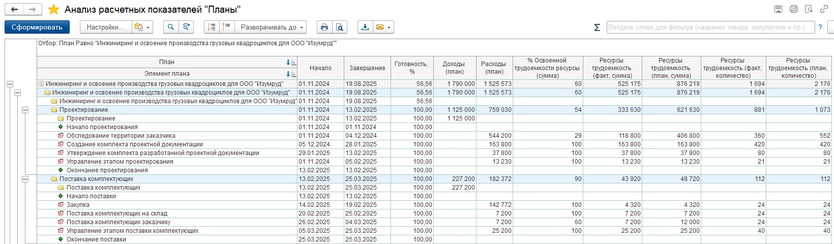 - анализ движения ТМЦ в разрезе проектов и проектных работ.