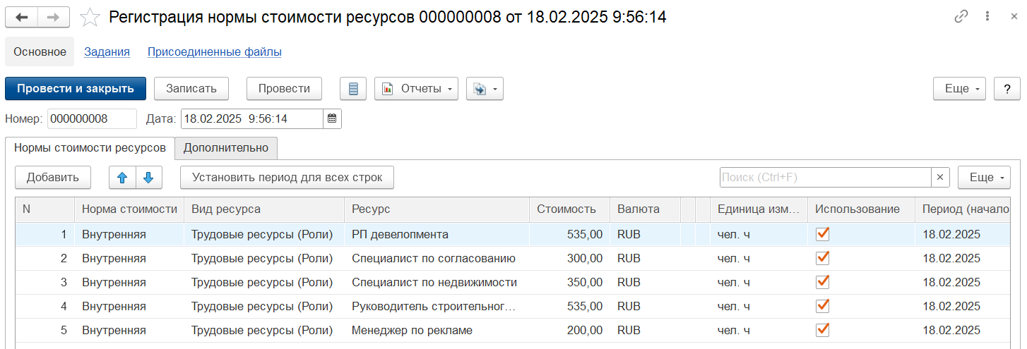 Планируемые затраты могут быть включены в плановый бюджет расходов проектной задачи с детализацией по подразделениям.