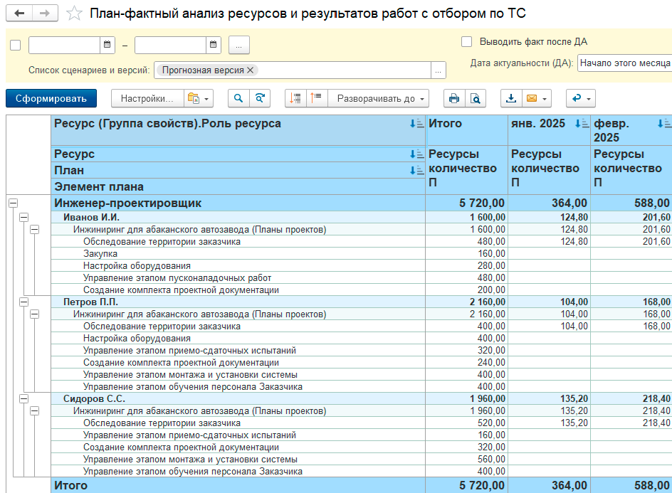 - сводный прогноз трудозатрат по ролям и трудовым ресурсам;