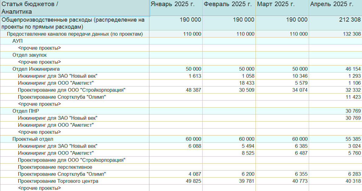 - Бюджет общепроизводственных расходов (ОПР) по проектам