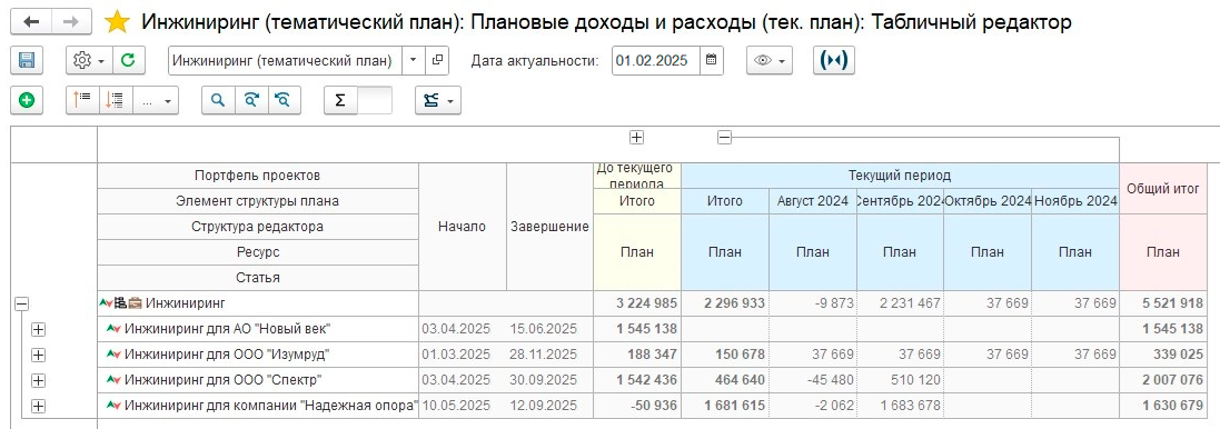 - редактирование БДР и БДДС в редакторе планов и табличном редакторе;