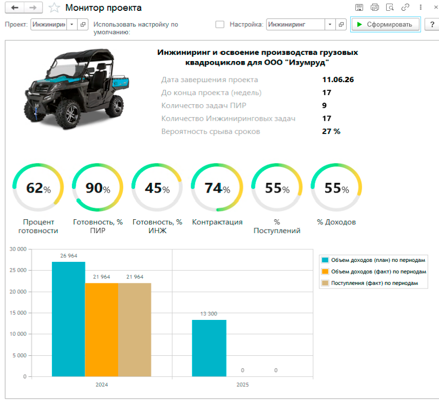 Система позволяет из проектной подсистемы "Проектное бюджетирование" передать данные в подсистему "Бюджетирование" контура ERP, тем самым обеспечив возможность формирования годовых бюджетов в разрезе проектов по компании в целом, контроль расходов денежных средств по проектам (казначейство) и сформировать финансовый результат по проектам и подразделениям средствами подсистем контура ERP.