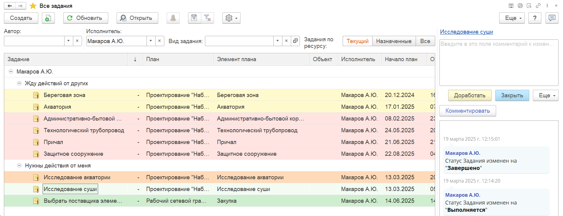 В системе предусмотрен механизм комментирования заданий и механизм управлением статусами заданий.